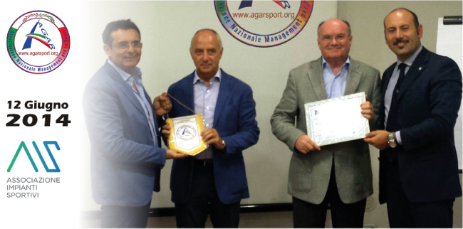 Giovedi 12 Giugno 2014, alle ore 19, presso la Sede Formativa AGAR di Napoli , si è tenuta la cerimonia di firma della convenzione fra AGAR Associazione Nazionale Specializzata nel Management formativo ed informativo applicato allo Sport ed A.I.S. Associazione Impianti Sportivi.